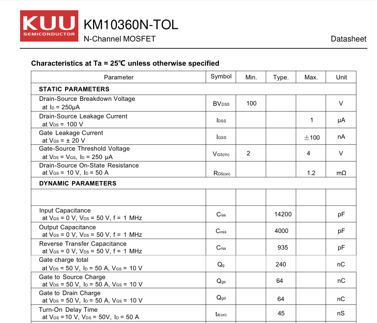 在現(xiàn)代智能電子設(shè)備中,體積與效率的博弈從未停止。為應(yīng)對(duì)5G、新能源、汽車電子對(duì)高密度設(shè)計(jì)的需求,其中,MOSFET作為電源管理的核心器件,我們KUU原廠推出全新產(chǎn)品——MOSFET「 KM10360N-TOL」。以1.2mΩ超低內(nèi)阻、100V耐壓和極致散熱性能,還采用了先進(jìn)的TOLL封裝技術(shù),重新定義小型化電源方案的新邊界!